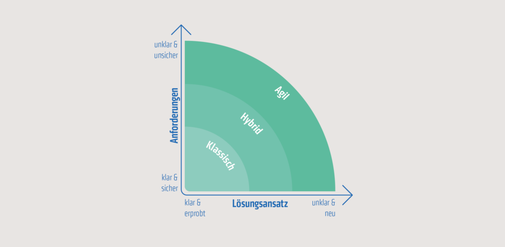 Agilität erfordert zudem, Verantwortung abzugeben, Fehler zuzulassen und mit Unsicherheit umzugehen. Diese Herausforderung erfordert gerade in stark hierarchischen Organisationen ein hohes Maß an Engagement und Geduld. Unsere Erfahrung zeigt, dass eine enge Begleitung und gezielte Workshops helfen können, diese Hürden zu überwinden und eine agile Kultur nachhaltig zu etablieren. Dabei ist es jedoch nicht nur entscheidend, dass die Teams lernen, agil zu denken und zu handeln, sondern auch, dass das Projekt selbst für agile Methoden geeignet ist. Nicht jedes Projekt profitiert von agilen Ansätzen, insbesondere dann nicht, wenn die Anforderungen von Anfang an klar definiert sind und kaum Änderungen zu erwarten sind. In solchen Fällen können klassische Methoden effizienter sein. Agile Methoden entfalten ihre Stärke vor allem in Projekten, die von Unsicherheit, sich ändernden Anforderungen oder einer hohen Komplexität geprägt sind. Es reicht also nicht, ein Scrum Board aufzusetzen und Rollen zu verteilen. Teams müssen lernen, agil zu denken und zu handeln. Das ist ein Prozess, der Geduld und kontinuierliche Reflexion erfordert. Gleichzeitig muss geprüft werden, ob die Rahmenbedingungen des Projekts die Flexibilität und iterative Arbeitsweise agiler Methoden überhaupt zulassen. Nur wenn beides, Team und Projekt, auf Agilität ausgerichtet sind, kann eine nachhaltige agile Kultur entstehen.
