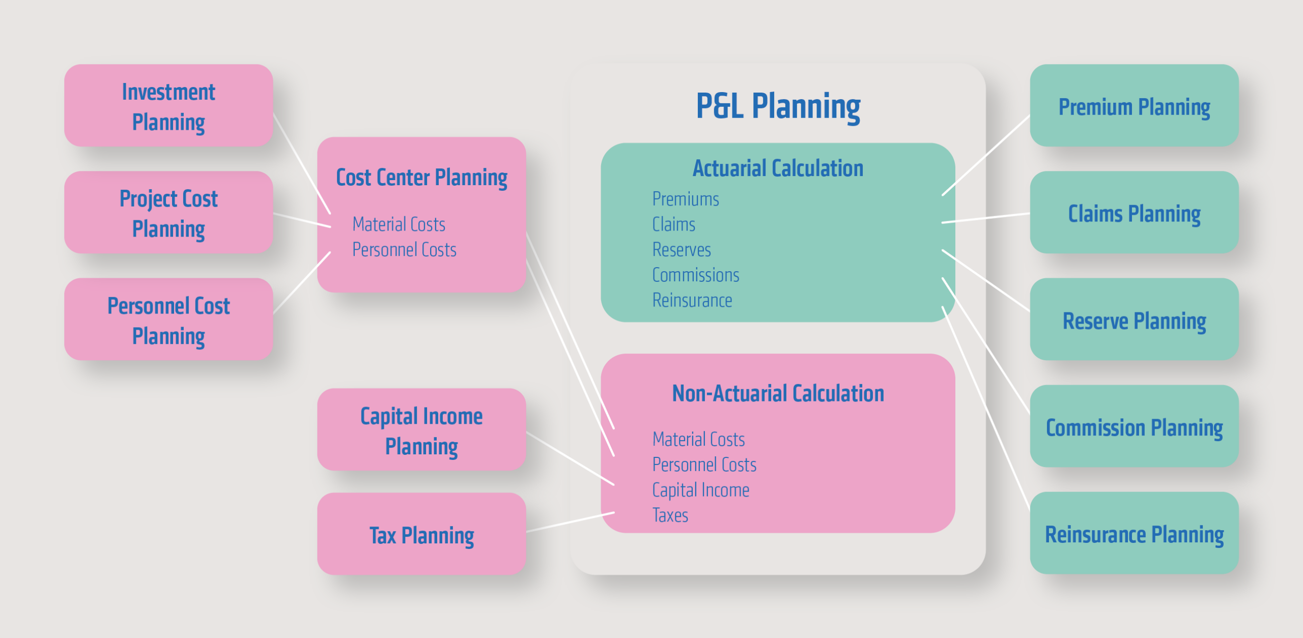 The central requirement for integrated profit and loss planning was the coverage of the following planning areas: