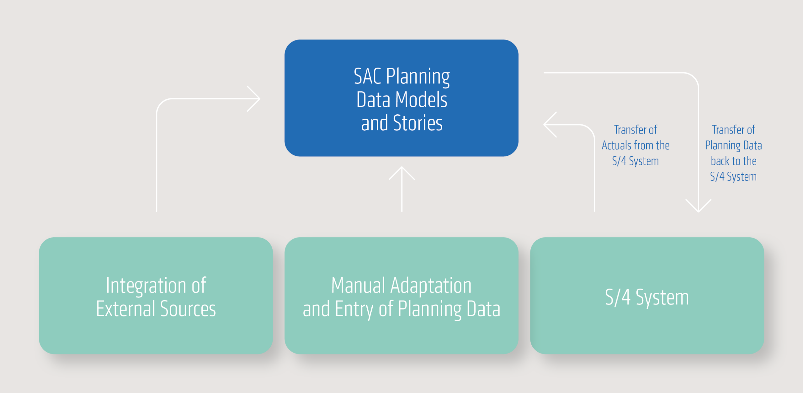 Das Rückspielen der Plan-Daten von der SAC in das S/4-System ermöglicht eine vollumfängliche Plan-GuV-Darstellung und festigt das S/4-System als Datenbasis für operative und strategische Reporting-Fragestellungen (single point of truth).