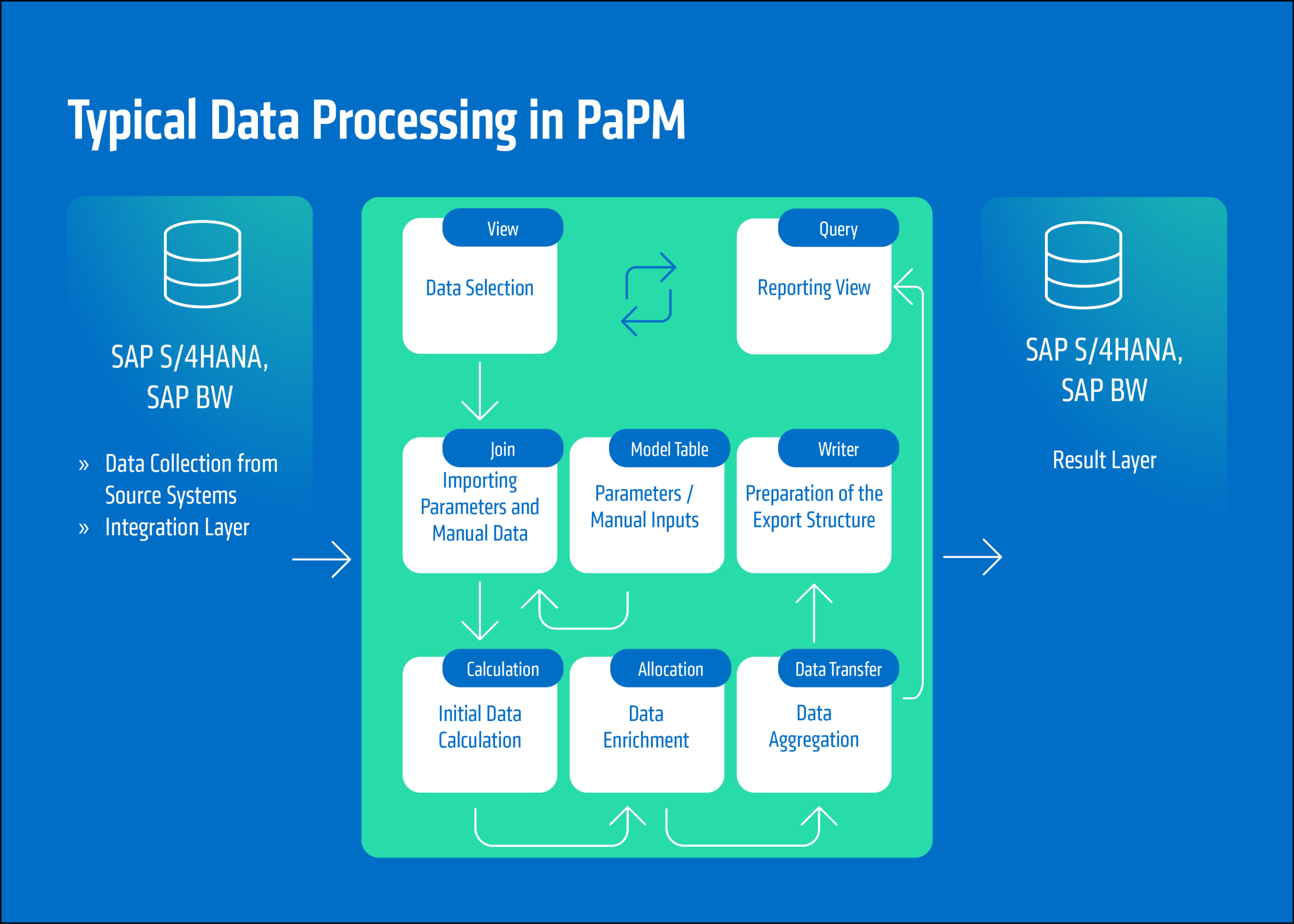SAP PaPM is therefore a flexible and high-performance calculation tool that supports complex, international business models in various industries (e.g., banking).