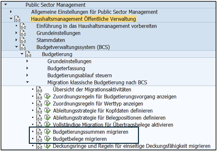 Für eine korrekte Migration ist daher zu prüfen, ob die Budgetvorgänge der klassischen Budgetierung mit den Einstellungen im BCS harmonieren.