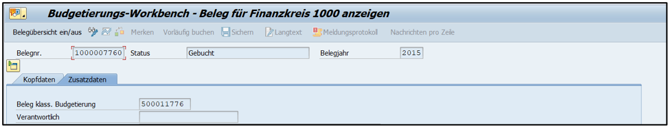 - Erfassungsbelegnummer aus der klassischen Budgetierung (KB)